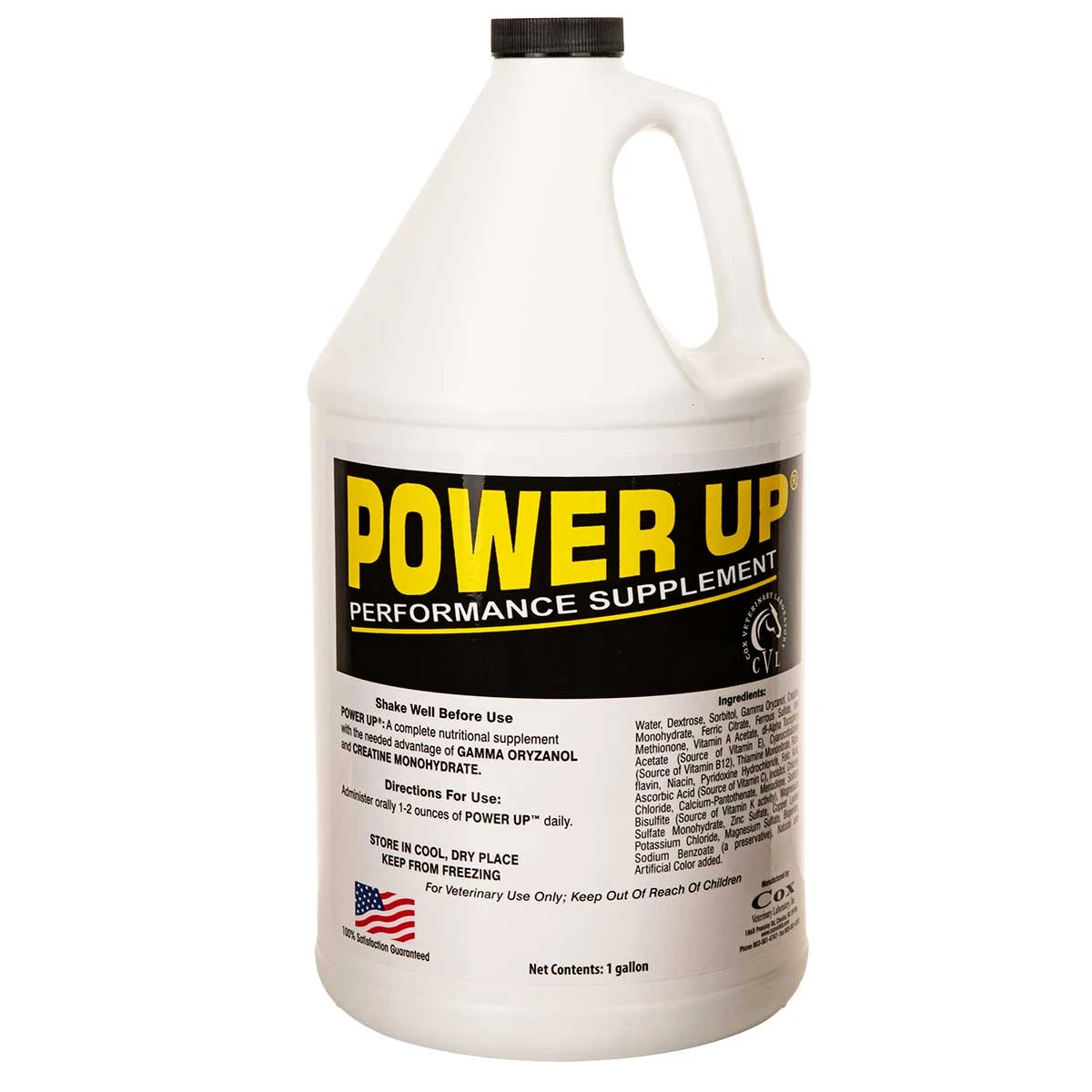 Contains iron and creatine gamma oryzanol which works to increase muscle integrity. Power Up is a natural alternative to an anabolic steroid. Cox Vet Lab’s formula is ideal for horses that are performance/race horses and hard keepers. Supports performance, endurance and healthy for skin and coat.